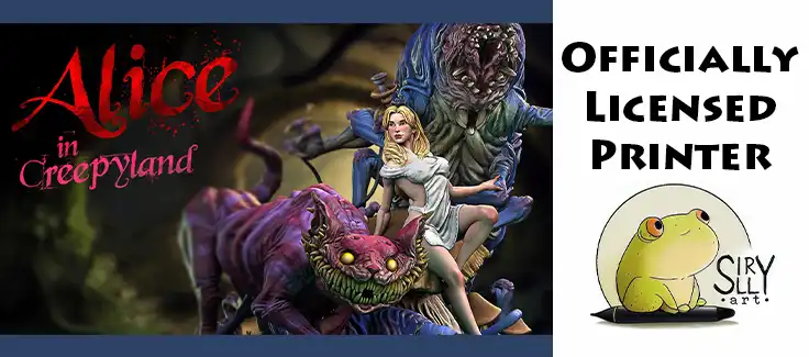 Simtasia is licensed to 3D print and sell printed models of the Siryll Art 2023 Kickstarter campaign Alice in Creepyland.