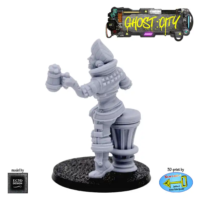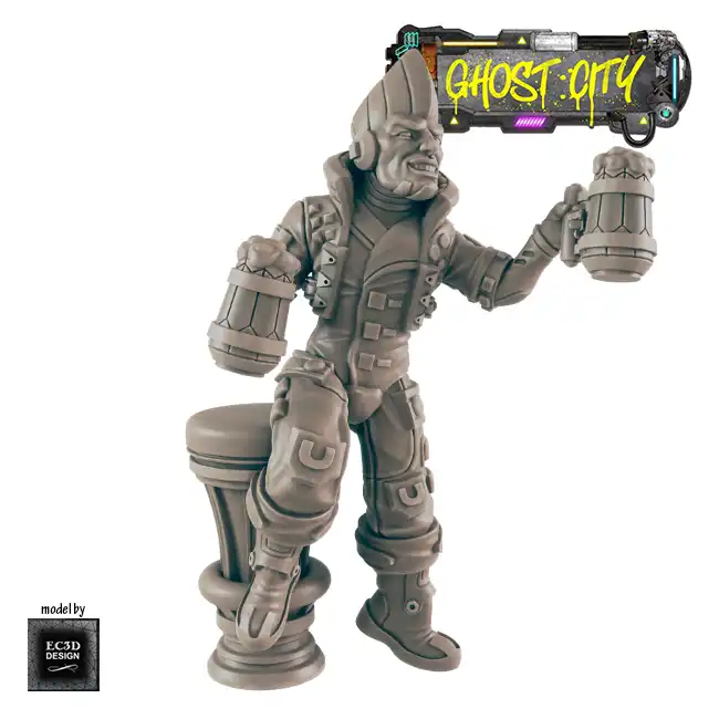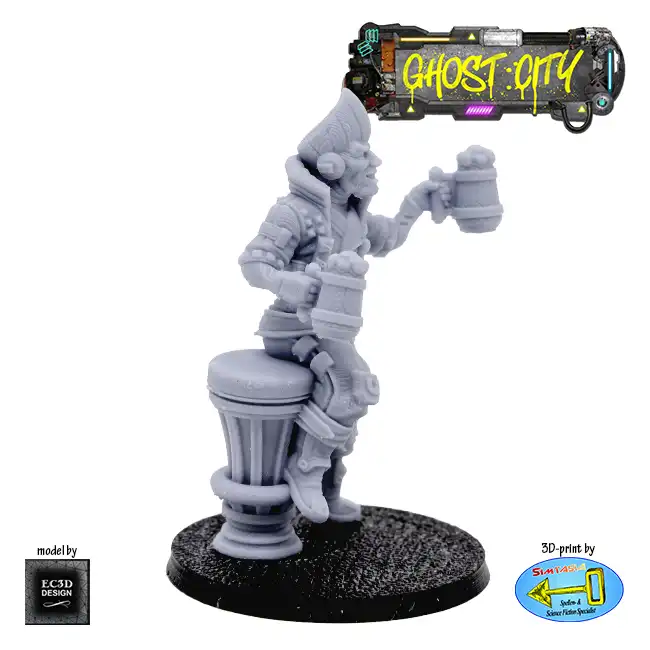 A detailed resin print of a Party Boy, a male drinker having a good time, suitable for Roleplaying Game or diorama.