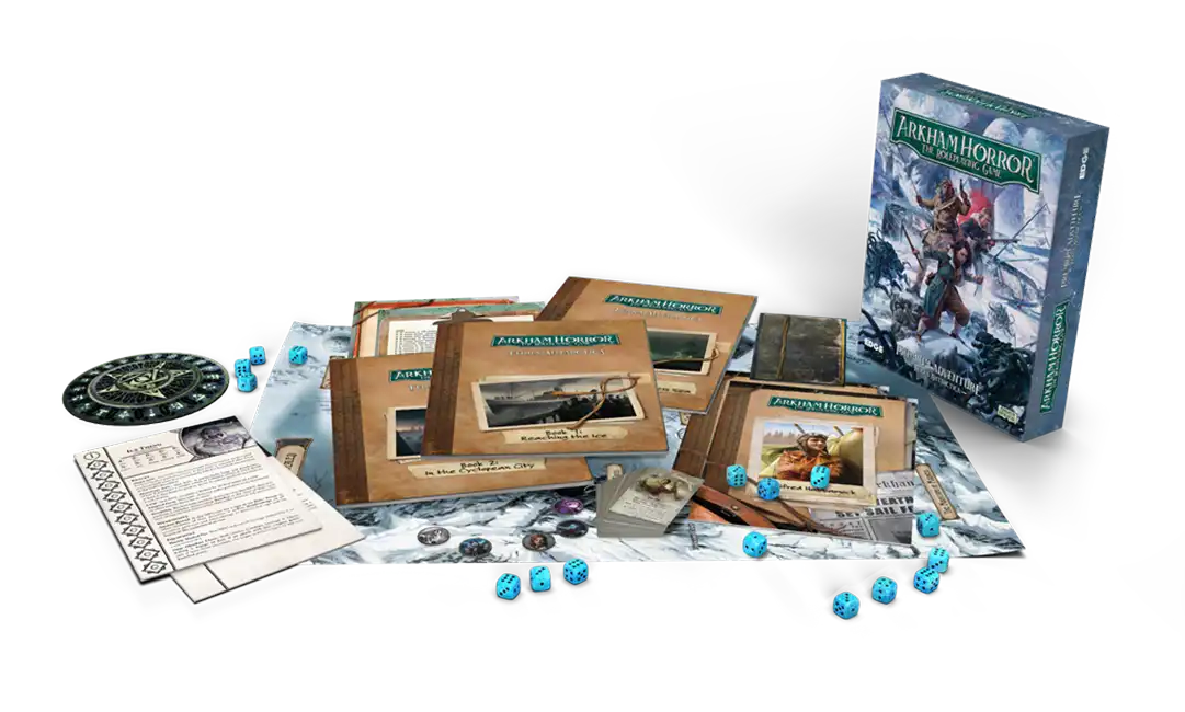 Over 50 hours of exploration, adventure, dazzling action, and heroic battles await you within Terra Antarctica. This premium adventure boxed set contains all the material you need to deeply immerse yourself into an epic campaign. Players can take on the role of one of six premade characters or use their own characters from the Arkham Horror RPG Core Rulebook. In either case, this campaign provides unique options for advancement, a full roster of equipment, and redoubtable allies to help the expedition succeed.