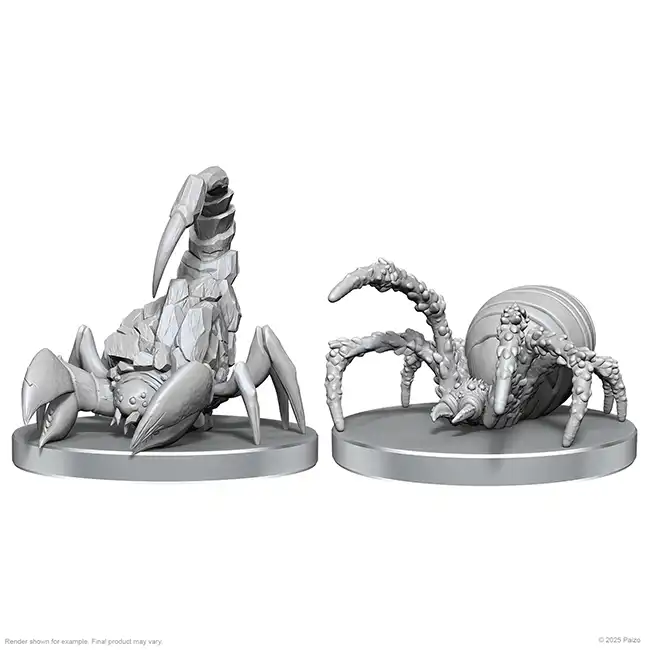 Two highly detailed miniatures of a Cave Scorpion & Hunting Spider, suitable for Pathfinder RPG, D&D or any other fantasy game.