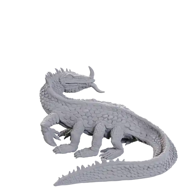 A detailed miniature of a Classic Basilisk, suitable for D&D or any other fantasy game.