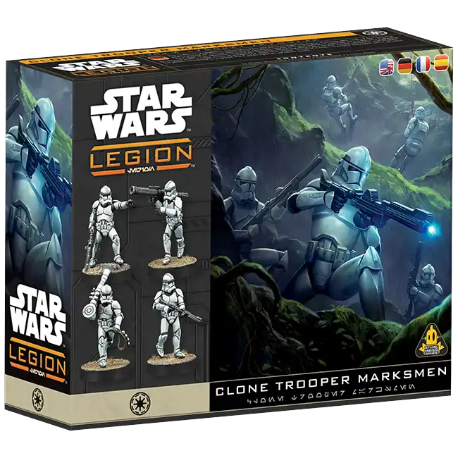 Clone troopers are skilled with a wide variety of weapons, however, the DC-15 has become the mainstay of the clone army. Clone Marksmen use the DC-15 blaster rifle alongside heavy weapons to create a withering hail of accurate firepower. This Star Wars™: Legion Clone Trooper Marksmen box adds 11 Clone Trooper Marksmen miniatures, enough for 1 Corps unit. This is an excellent next-step expansion for players looking to build their Galactic Republic larger than a Recon-level army.
