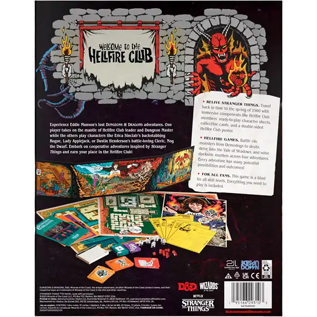 - FINISH THE CAMPAIGN—The Hellfire Club was born in Eddie Munson’s basement—a haven for outsiders, free spirits, and dice-slingers. But his final campaign was left unfinished… until now. Keep the flames of Hellfire burning in this collaborative 3–5 player game.