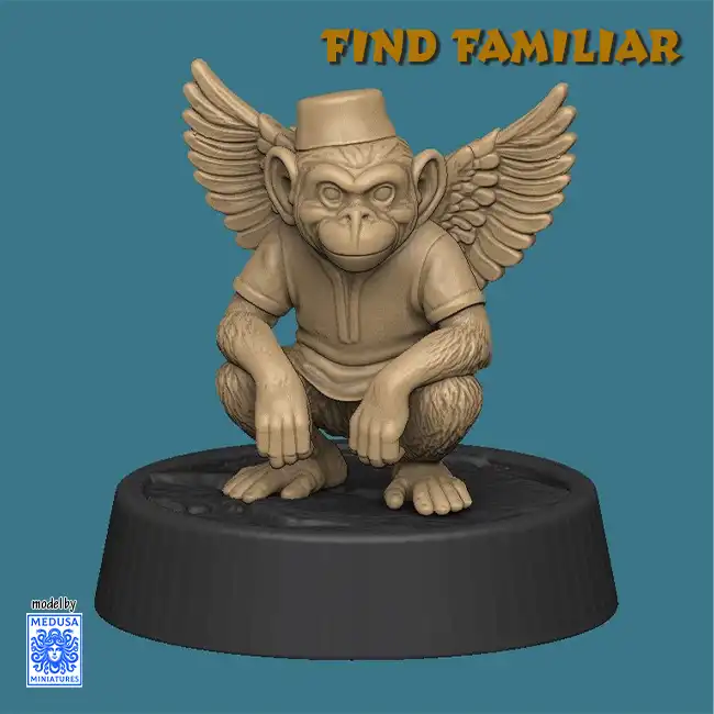 Simtasia is licensed to 3D print and sell printed models of the Medusa Miniatures 2025 Kickstarter campaign Find Familiar Vol 3.