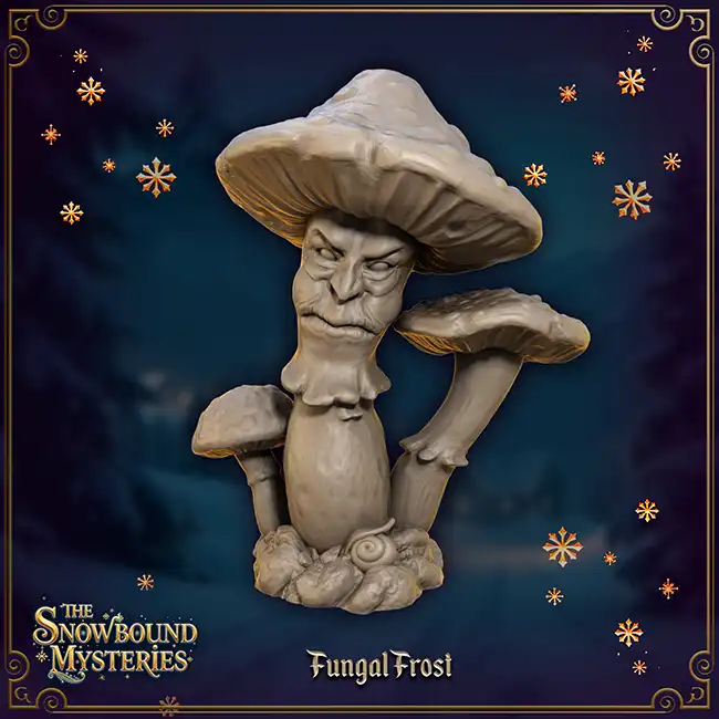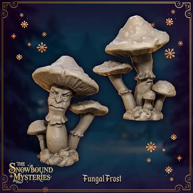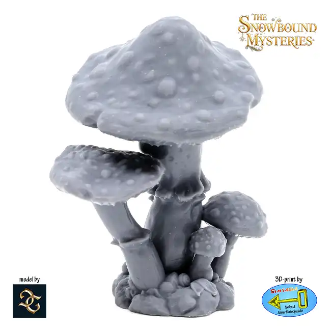 Fungal Frost is a detailed 3D print in resin inspired by Alice in Wonderland, suitable for Roleplaying Game or (Christmas)diorama.