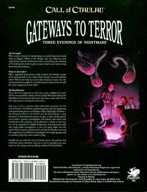 Gateways To Terror bevat drie korte scenario’s voor het rollenspel Call of Cthulhu.