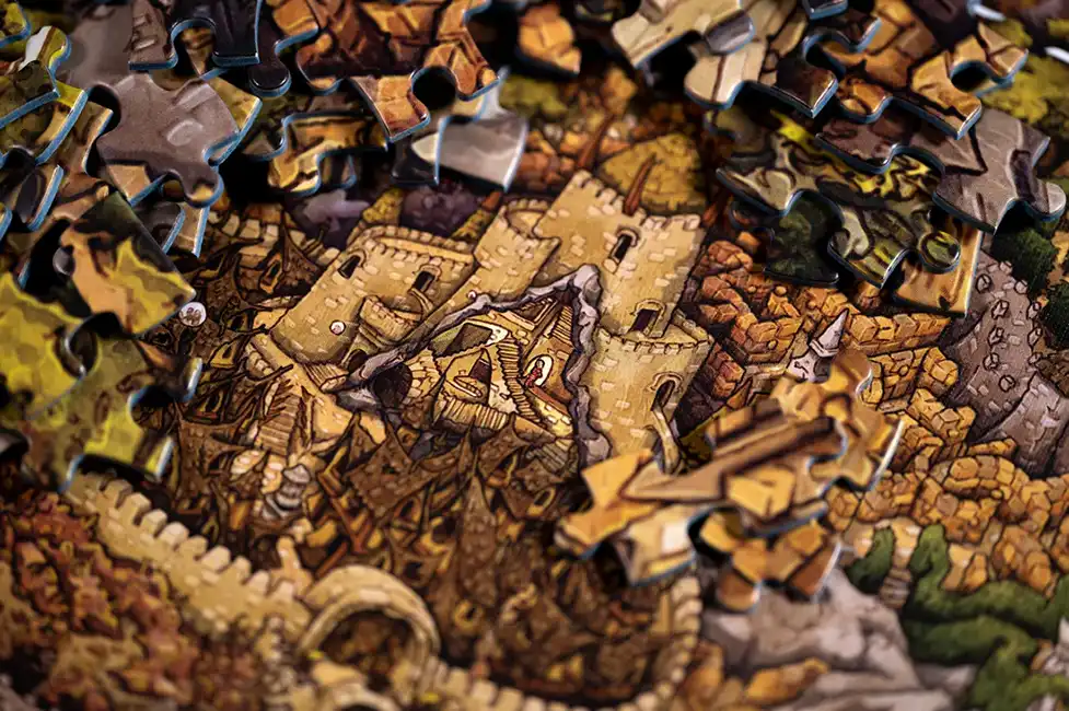 Een prachtige legpuzzel van 1000 stukjes met een ongelooflijk gedetailleerd tafereel geïnspireerd op de Jim Hensons film Labyrinth, geschilderd door Johny Fraser-Allen.
