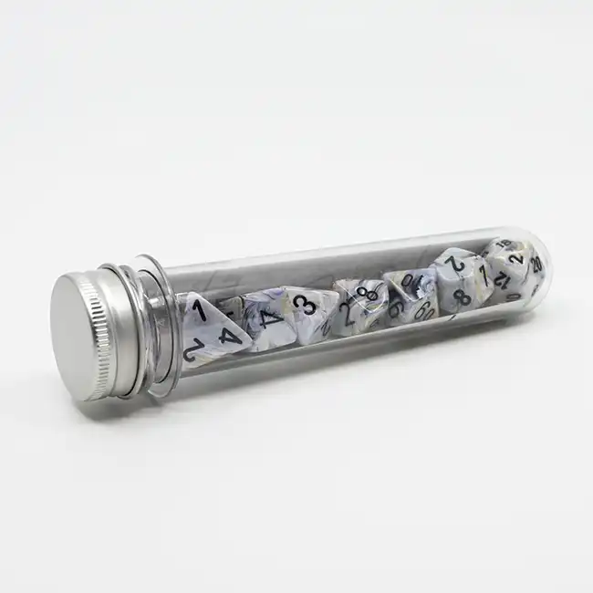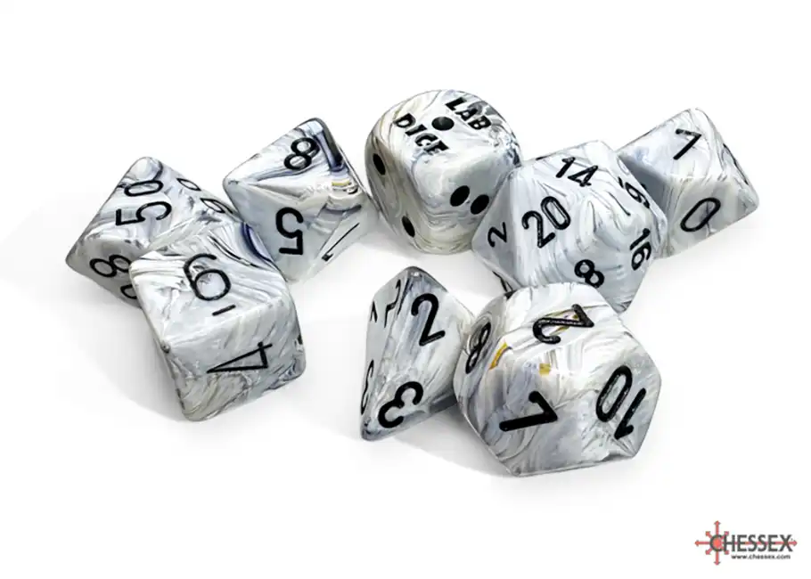 Lab Dice: Marble Calcite™ with Black Numbers Polyhedral Dice Set (7 + a bonus dice):