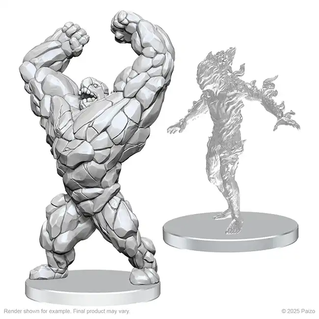 Two highly detailed miniatures of a Living Landslide & Living Wildfire, suitable for Pathfinder RPG, D&D or any other fantasy game.