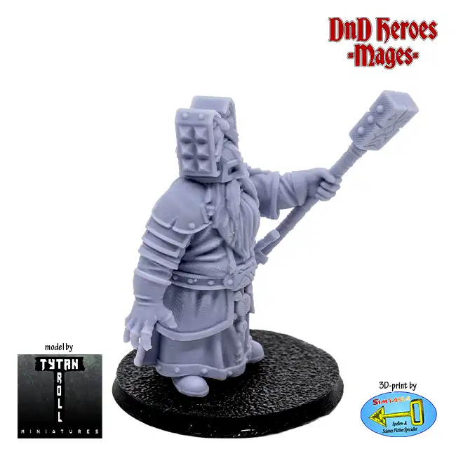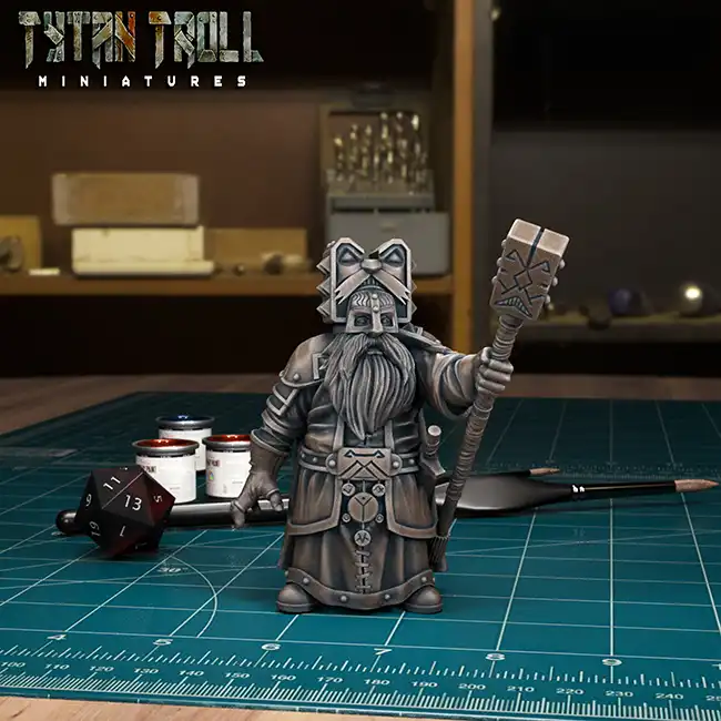 A detailed resin print of a Male Dwarf Mage, suitable for Roleplaying Game or diorama.