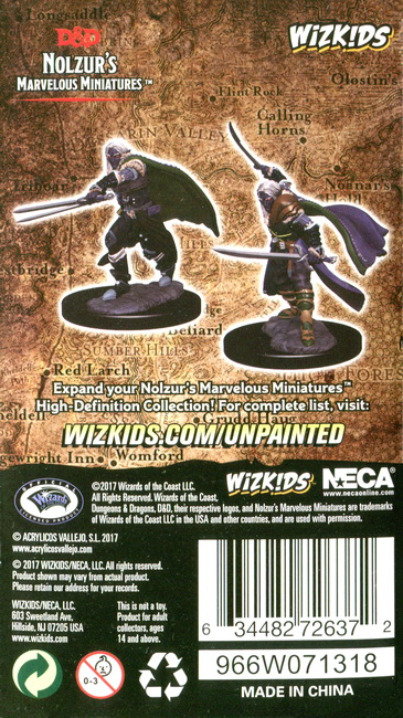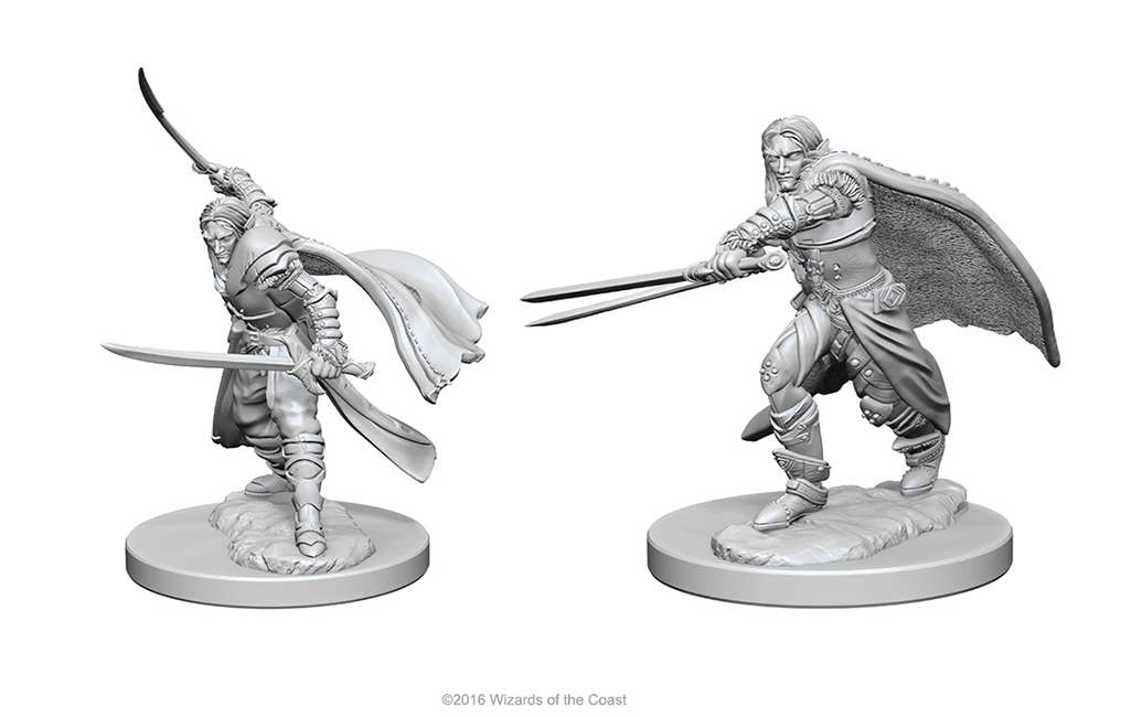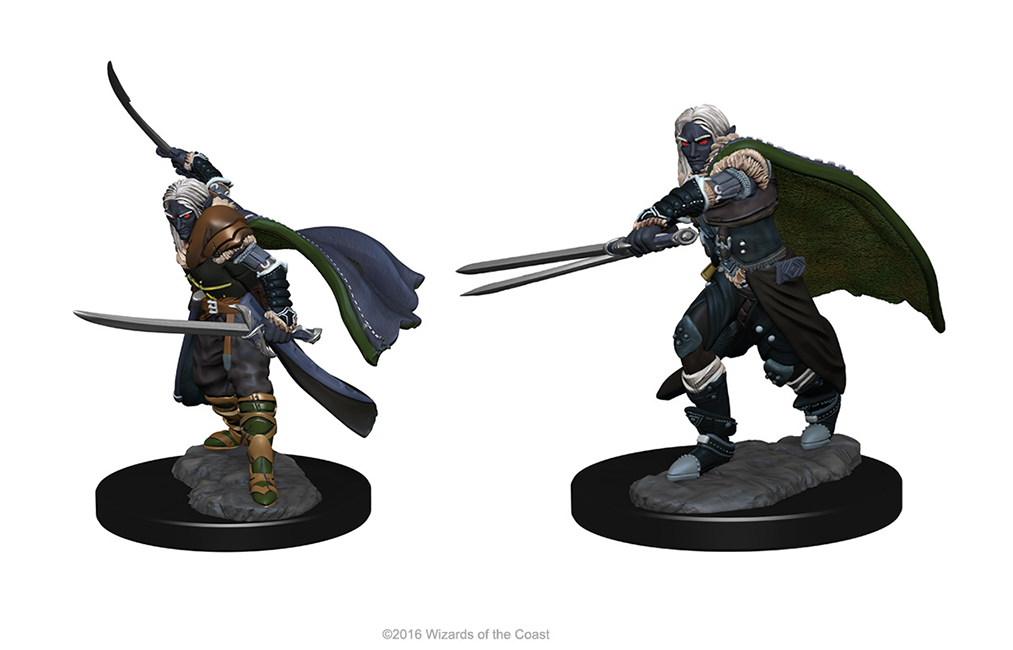 Two highly detailed Male Elf Ranger miniatures (based upon the famous Dark Elf: Drizzt Do’Urden), suitable for D&D or any other fantasy game.