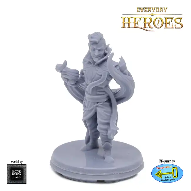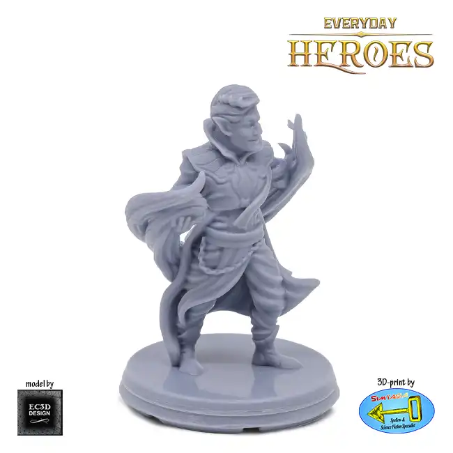 A detailed resin print of a Male Half-Elf Warlock, suitable for Roleplaying Game or diorama.
