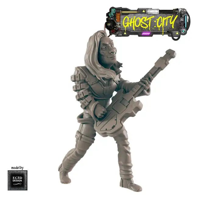 A detailed resin print of a Male Teen Rocker playing guitar, suitable for Roleplaying Game or diorama.