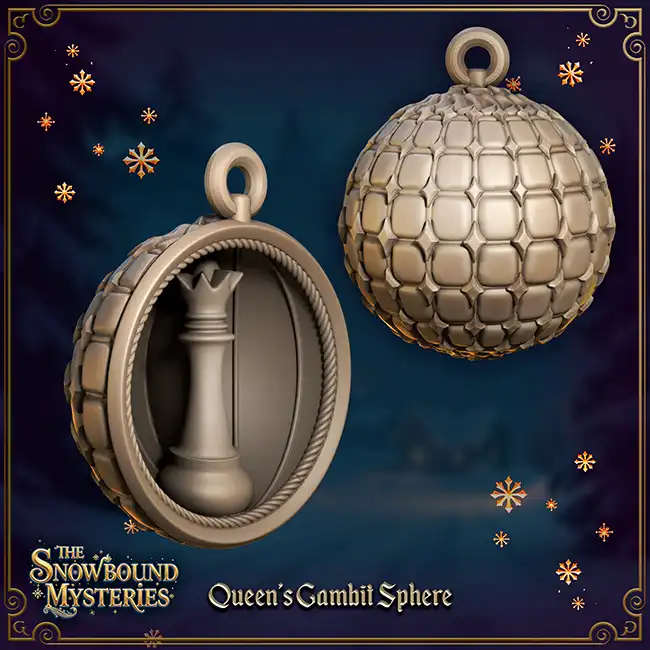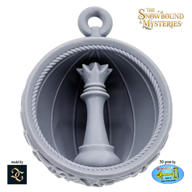 The Queen’s Gambit Sphere is a detailed 3D print in resin inspired by Alice in Wonderland, suitable for painting and decorating your Christmas tree.