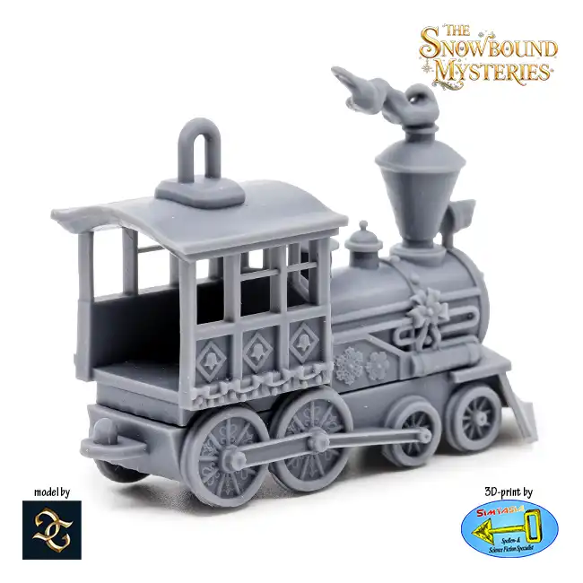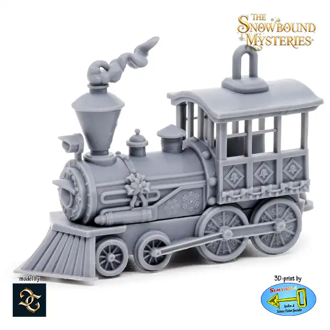 The Shadowline Express Locomotive is a detailed 3D print in resin, suitable for painting and decorating your Christmas tree.
