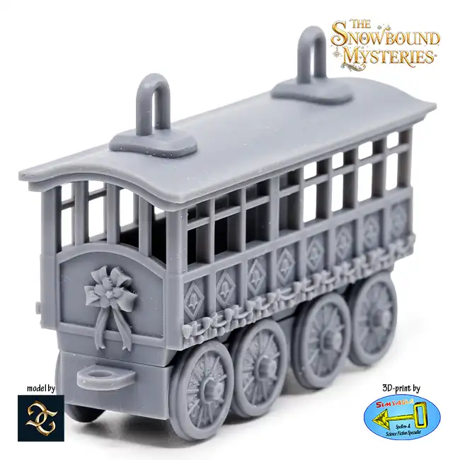 Complete your Shadowline Express Train with this detailed 3D resin print of the Shadowline Express Train Car, suitable for painting and decorating your Christmas tree.