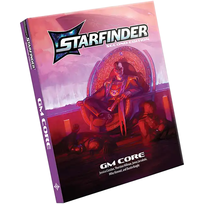Unleash your imagination, creating new galaxies and tales with the Starfinder GM Core for Starfinder Second Edition! This comprehensive 264-page rulebook gives Game Masters everything they need to craft thrilling tales of adventure, from a single-night’s scenario on the mean streets to complex epics spanning years. Within these pages you’ll find clear guidelines for creating new hazards and alien creatures, tools to design challenging, balanced encounters, and rules for rewarding characters for the dastardly challenges you array before them! Starfinder GM Core also contains rules for quick-to-run cinematic starship combat and dynamic hacking rules!