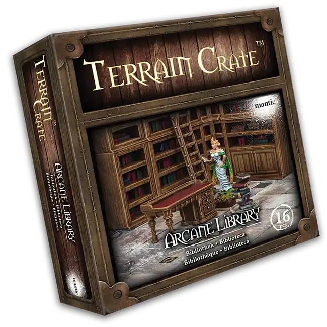 Terrain Crate: Arcane Library bevat 16 gedetailleerde PVC miniaturen van boekenkasten en andere zaken die je in een bibliotheek kunt tegenkomen. Deze miniaturen zijn gegoten in hoogwaardig PVC-plastic en perfect voor gebruik in een (fantasy)rollenspel.