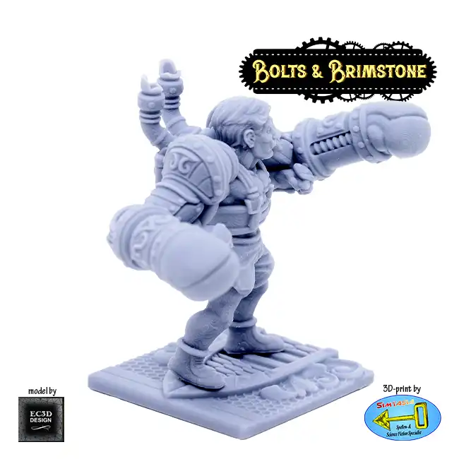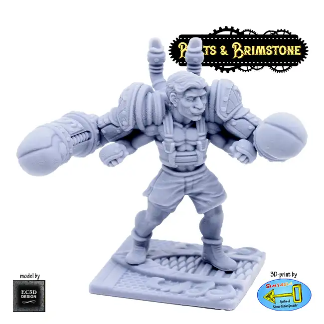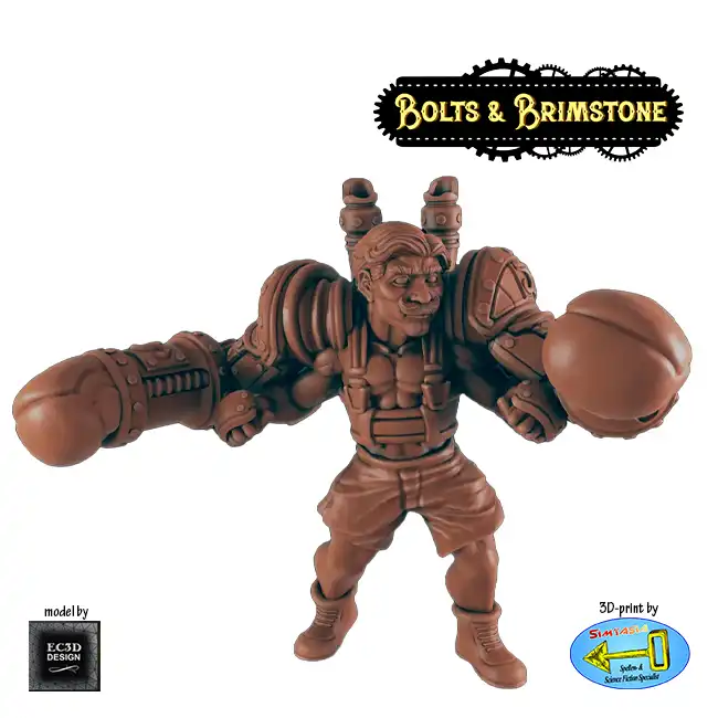 A detailed resin print of a Male Human Boxer with exoskeleton, suitable for Roleplaying Game or diorama.