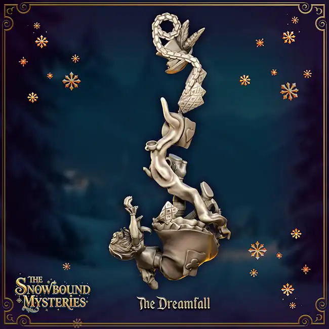 A detailed resin print of the Wonderland Christmas Ornament: The Dreamfall, suitable for painting and decorating your Christmas tree.