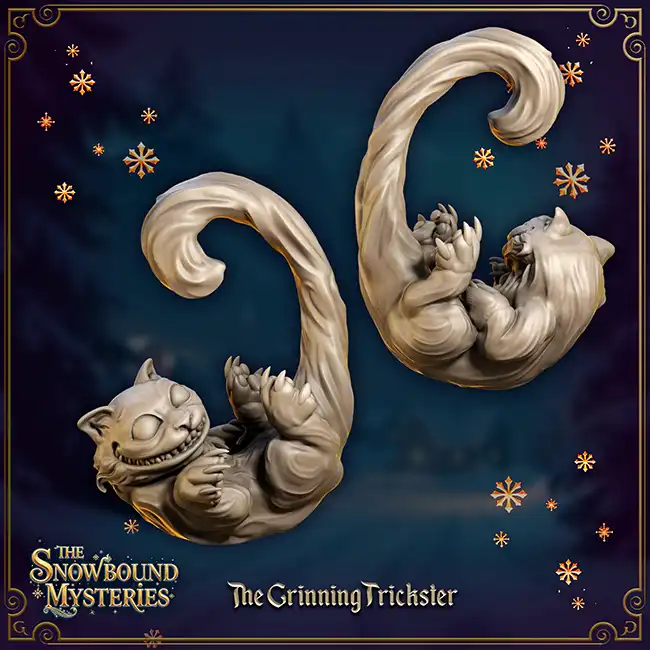 A detailed resin print of the Wonderland Christmas Ornament: The Grinning Trickster, suitable for painting and decorating your Christmas tree.
