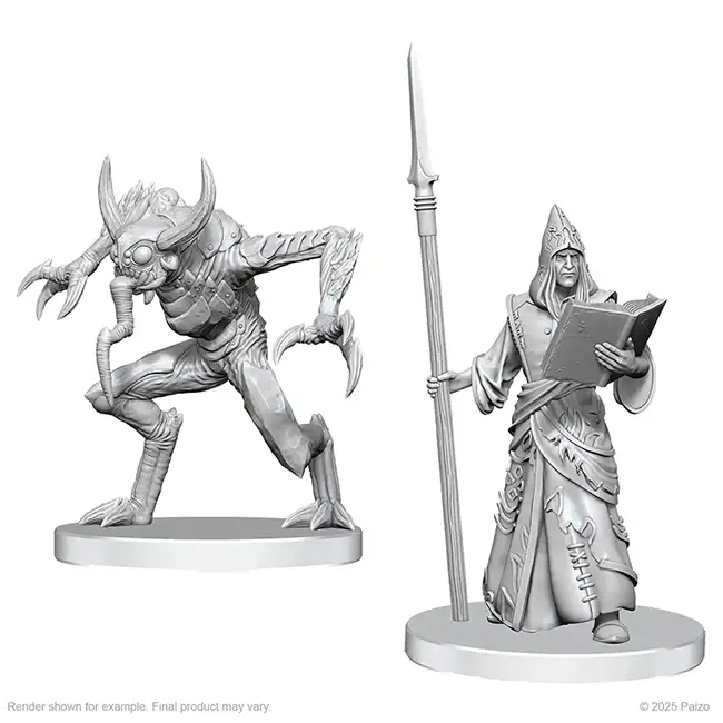 Two highly detailed miniatures of a Vloriak (Despoiler Demon) & Demonologist, suitable for Pathfinder RPG, D&D or any other fantasy game.